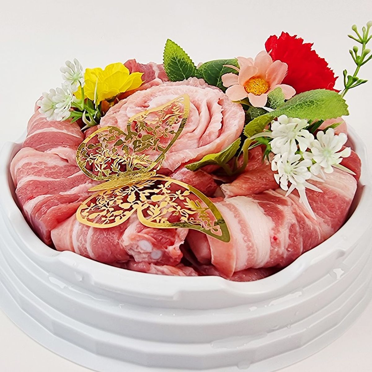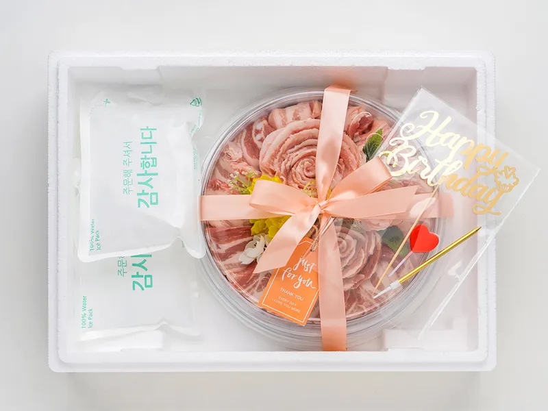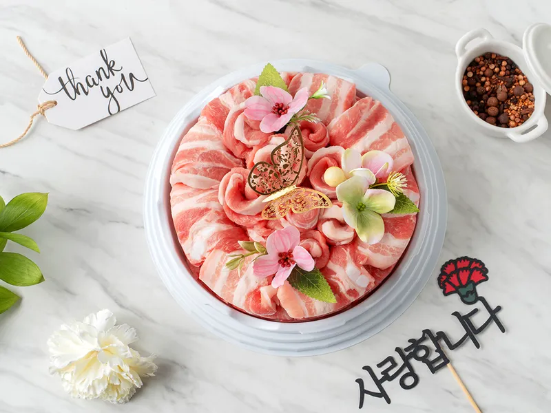보는 순간 감탄이 절로 나오는 푸짐한 무항생제 한돈 케이크