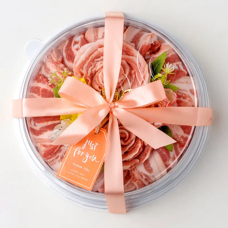 무항생제 한돈을 켜켜이 쌓아 올려 케이크처럼 만든 한돈 케이크입니다. 눈으로 보기에만 좋을뿐만 아니라 탱글탱글한 육질과 풍부한 육즙으로 맛까지 챙겼습니다. 5-6인이 즐길 수 있을 정도로 넉넉하게 담아 특별한 날 축하하고 싶을 때, 감사한 마음을 전하고 싶을 때 제격입니다.