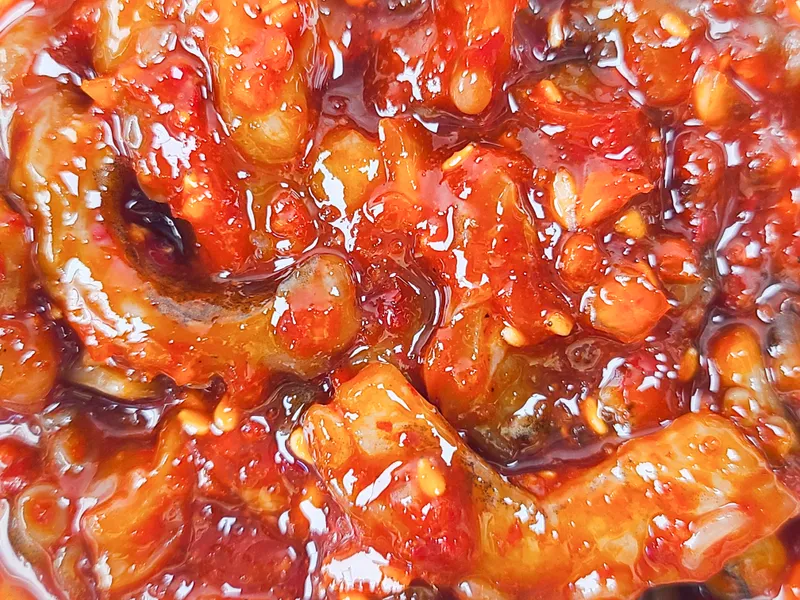 쫄깃한 낙지를 잘게 썰어 매콤한 양념에 버무려 숙성시킨 전통 젓갈이에요.