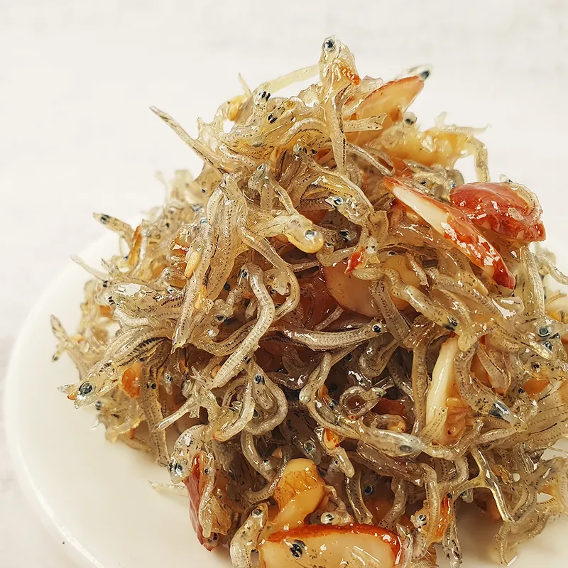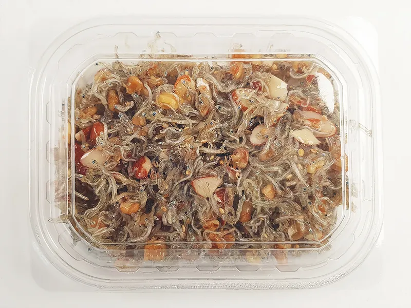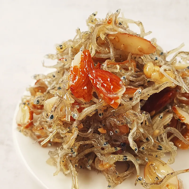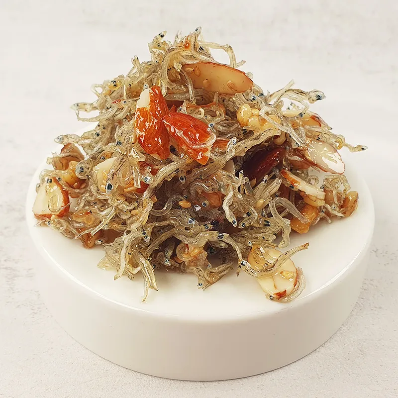 국내산 지리멸치에 영양만점 견과류를 넣고 고소하게 볶았습니다. 달지 않으면서 은은한 마늘 향이 일품이죠. 품질 좋은 지리멸치를 사용해 바삭하면서도 부드럽고 촉촉한 식감이 좋답니다. 너무 딱딱하지 않아 남녀노소 누구나 부담 없이 즐길 수 있어요.