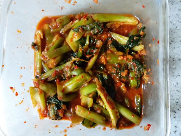 갓김치의 알싸한 맛은 좀 덜한 것 같아요.그리고 줄기보다는 잎 쪽이 더 많았으면 좋을 것 같아요
