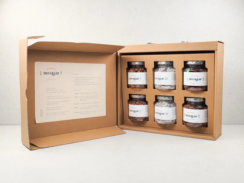 호두정과 120g*2병 + 눈꽃호두정과 120g*2병 + 피칸정과 120g*2병 구성입니다.