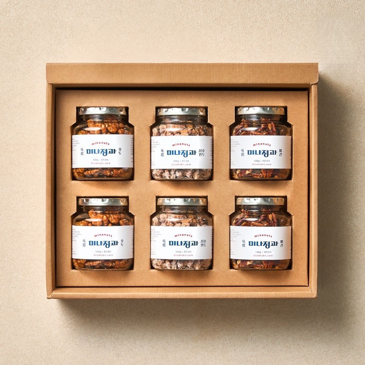 건강 간식 정과 3종 6구 선물세트! 각기 다른 매력을 보여주는 견과 3종으로 더욱 다채로운 맛과 식감을 느껴볼 수 있습니다. 호두정과, 눈꽃호두정과, 피칸정과를 각각 두 병씩 구성했으니 하루 한 줌, 건강 간식을 챙겨 드세요👍