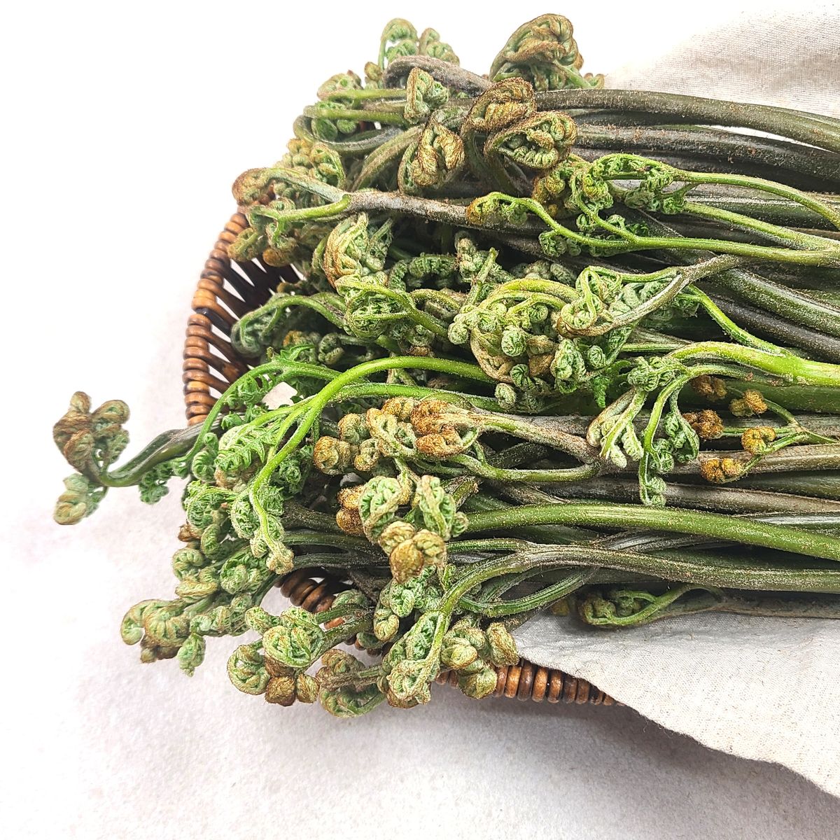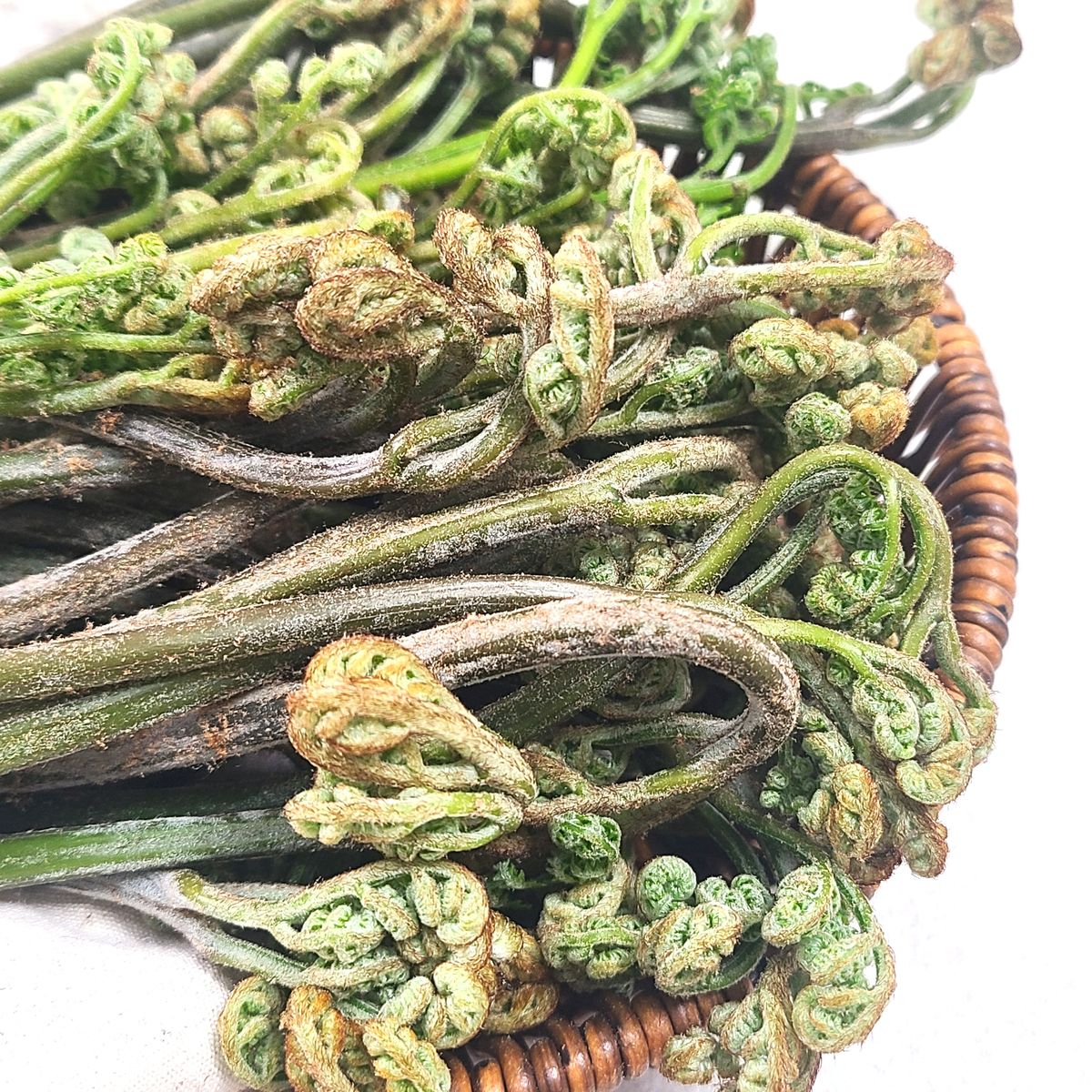 산에서 자연스럽게 자라난 고사리는 깨끗하고 오동통한 식감이 살아있어요. 흙에서 자라나는 만큼 자연의 은은한 단맛을 느낄 수 있으며, 부드러운 식감이 특징이랍니다.