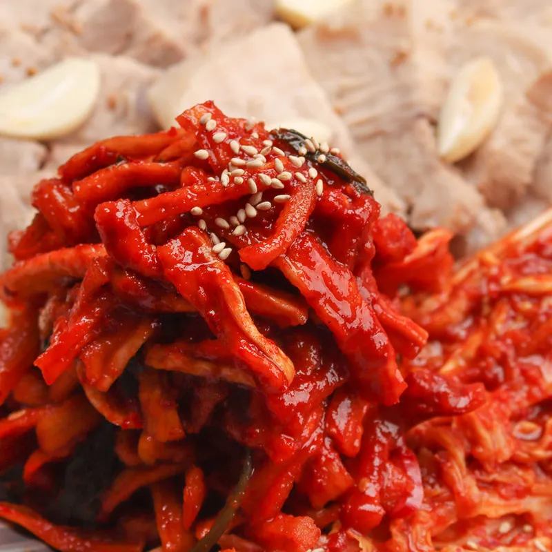 매콤하고 새콤한 맛이 입맛을 자극하면서도 부드럽고 깔끔합니다. 신선한 식재료의 맛을 살린 건강한 반찬으로 즐길 수 있습니다.