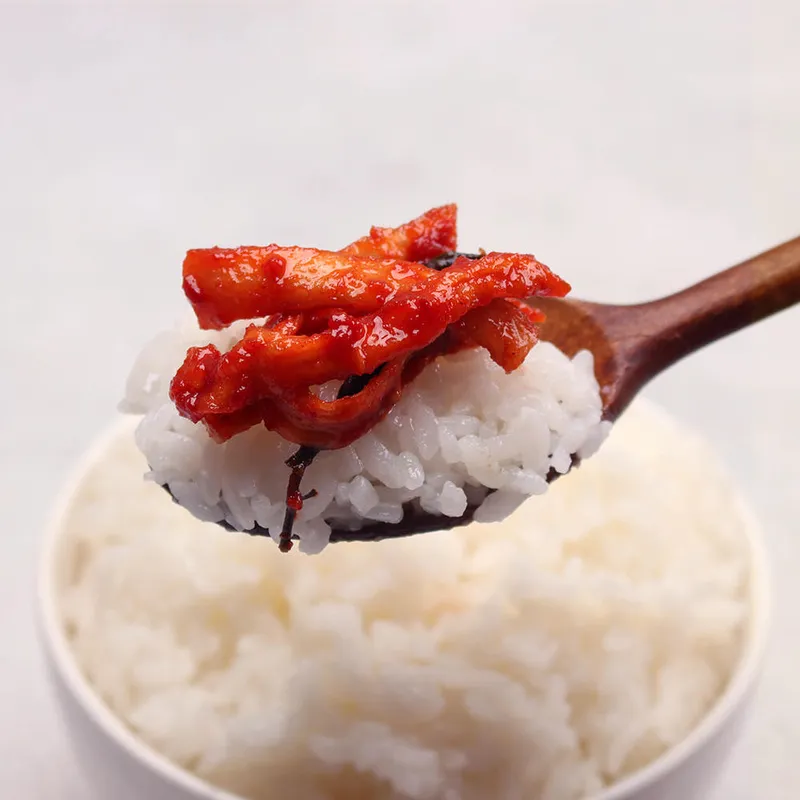 어떤 요리와도 잘 어울리는 만능 반찬입니다. 부드러운 밥, 얼큰한 라면, 부드러운 죽과 완벽한 궁합을 이룹니다. 한 접시에 담으면 식탁의 분위기를 한층 풍성하고 맛있게 만들어줍니다.