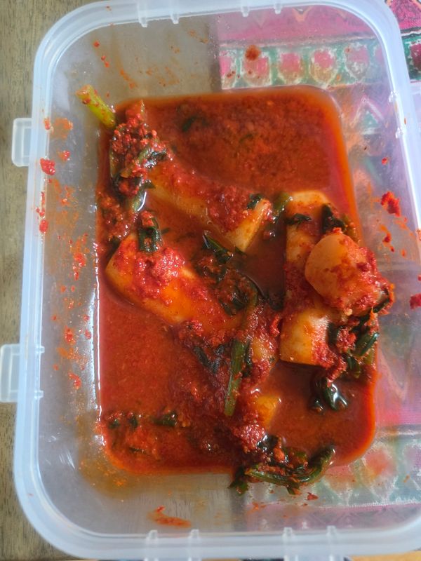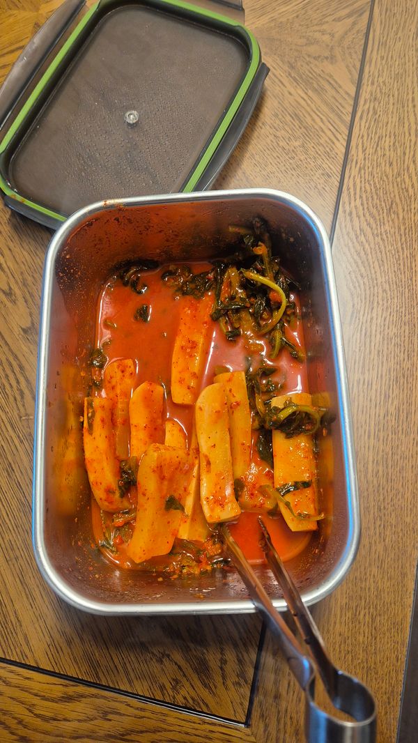 남도식 김치로 매콤하면서도 특유의 감칠맛과 깊은 향이 일품입니다. 총각김치의 짝꿍은 라면인 거 아시죠? 다른 재료 없이 라면에 총각김치 하나 올려서 같이 먹으면 게임 끝이랍니다.