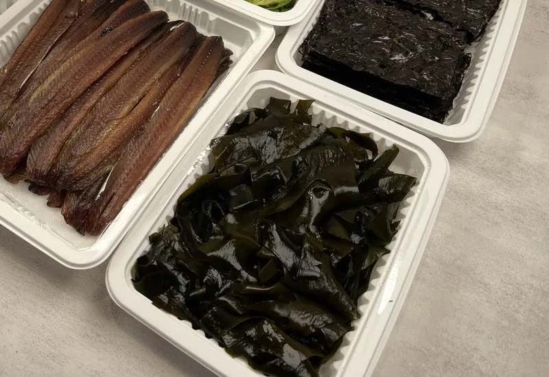 시중에 판매하는 상품은 대부분 다시마 쌈을 넣습니다. 저희는 그대신 오독오독한 식감 끝내주는 생 돌미역을 함께 넣어 드립니다. 바다 향을 더 진하고 풍부하게 즐겨 보세요!