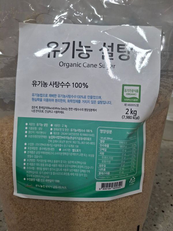 마트나 어디에서든지 설탕은 있지만 유기농 설탕이라고 해서 주문해 봤어요. 잘 먹을게요.