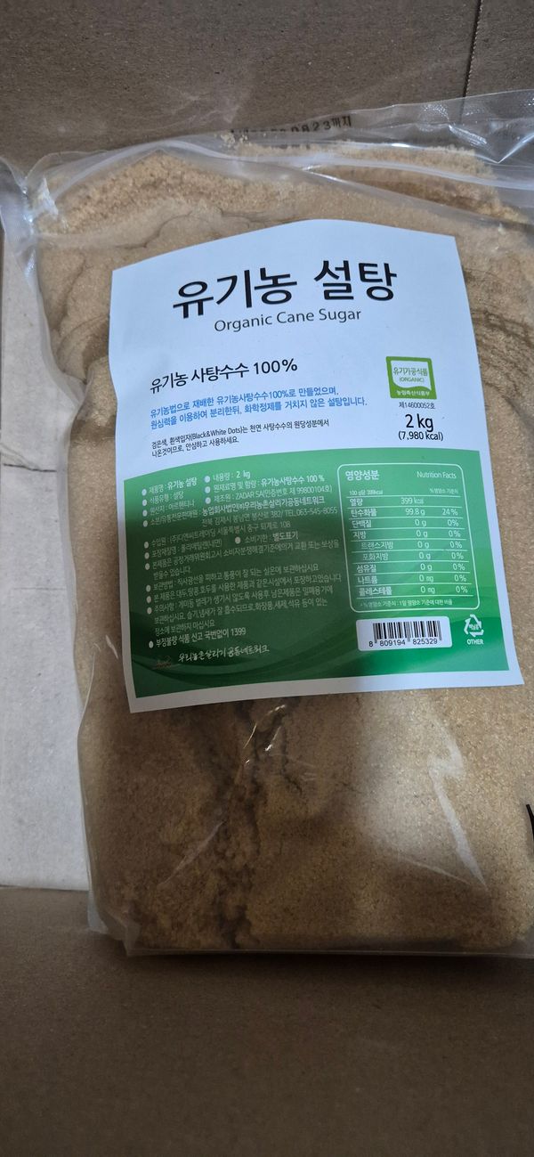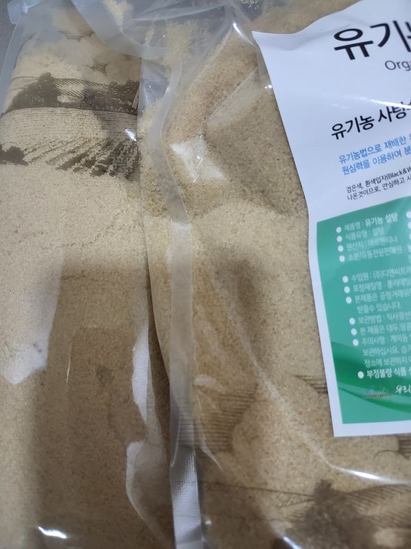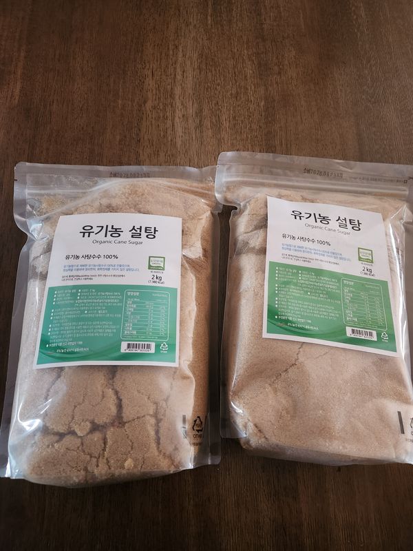 유기농사탕수수라서,2키로,두개구입했어요~~ 음식에넣어도건강에좋잖아요~~화학정제를 거치지않은설탕이라서,더더욱좋아요.