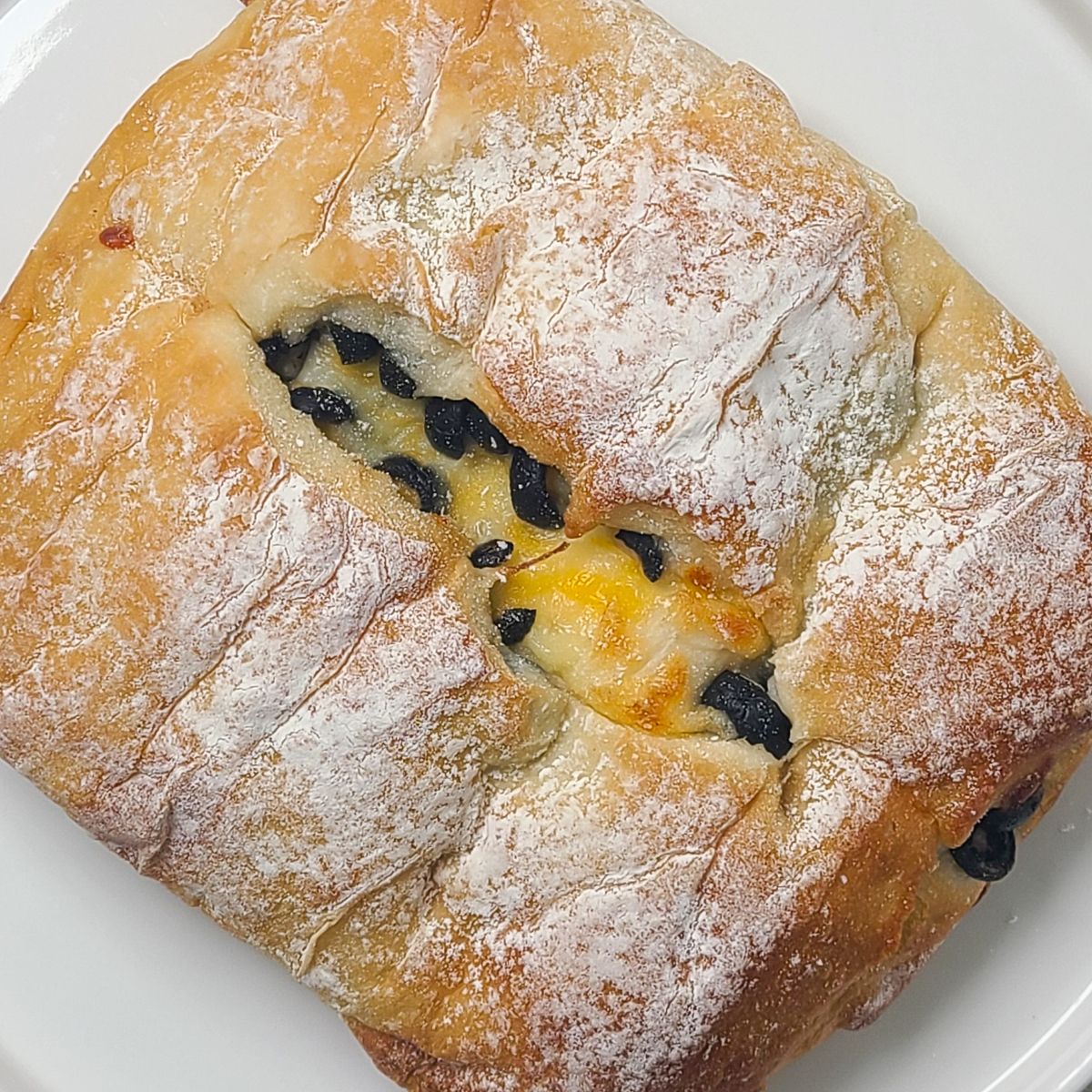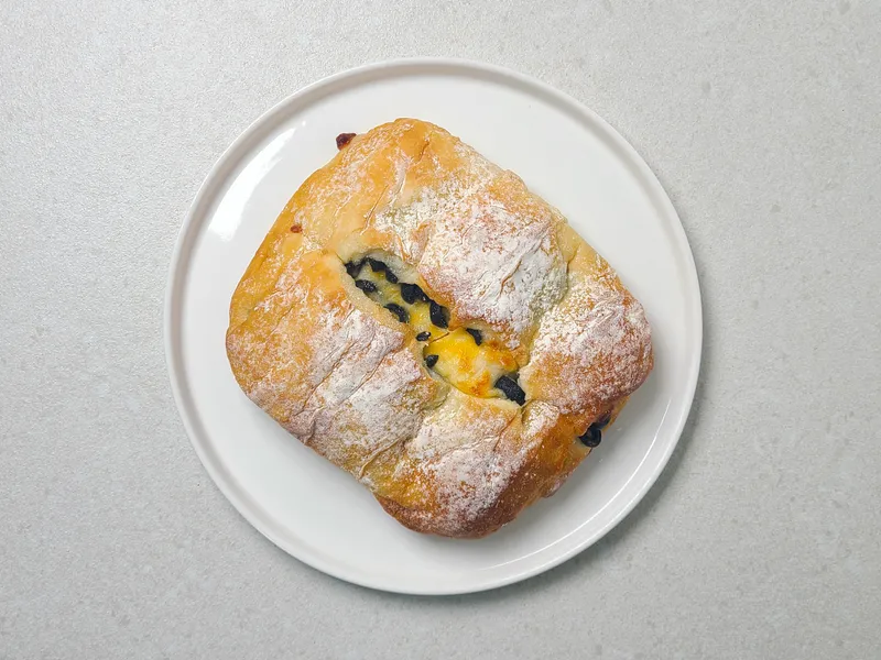 짜지 않은 올리브와 고소한 치즈가 어우러진 올리브 치즈 치아바타예요.