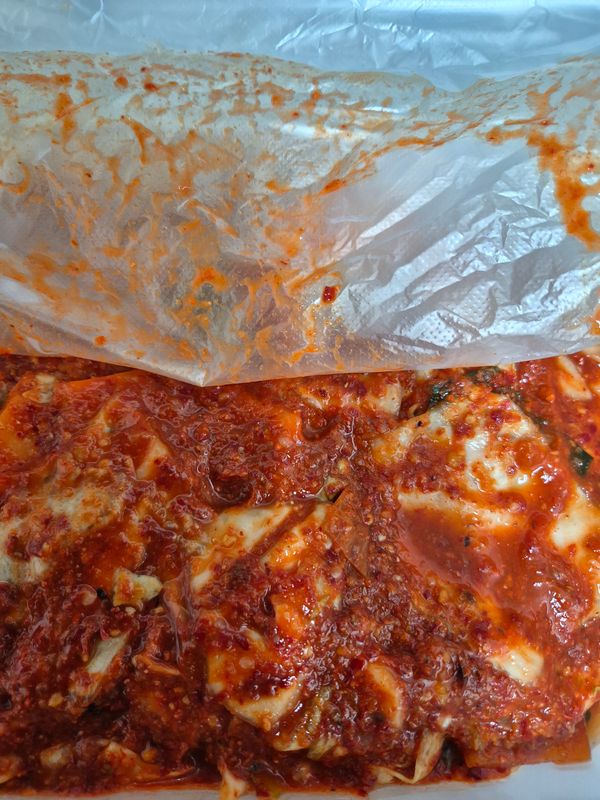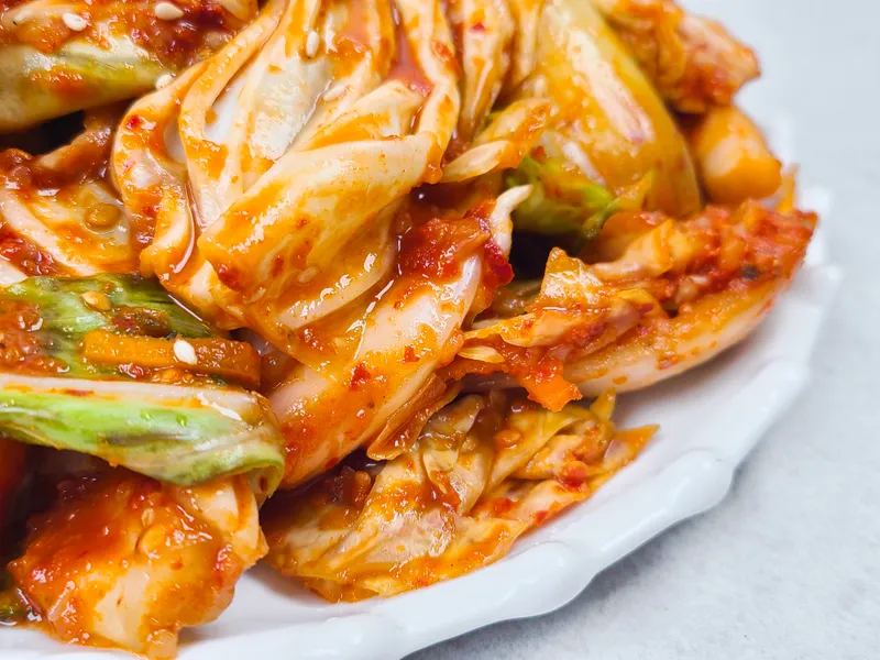 신선하고 아삭아삭한 양배추와 감칠맛 가득한 김칫소의 만남! 양배추의 달큼한 맛과 함께 시원한 양념과의 조화가 풍미롭게 어우러져요.