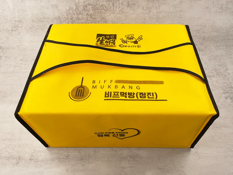 아이스팩을 동봉한 아이스박스를 선물용 부직포 가방에 넣어 보내드립니다.