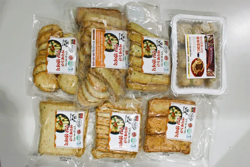 사각어묵, 땡초 둥근어묵, 오징어 쟁반어묵, 야채 보드어묵 각 300g씩 (총 40여 개),