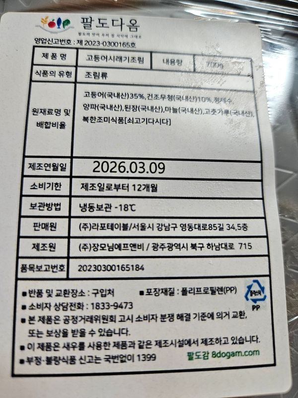 잘 받았습니다 냉동상태로 받았습니다 하~고등어는 퍽퍽 하고 양념도 별루고 3분에 1도 못 먹고 아까워서 버리도 못하고 결국은 버리 겠지요
