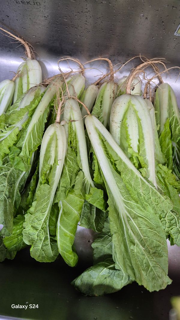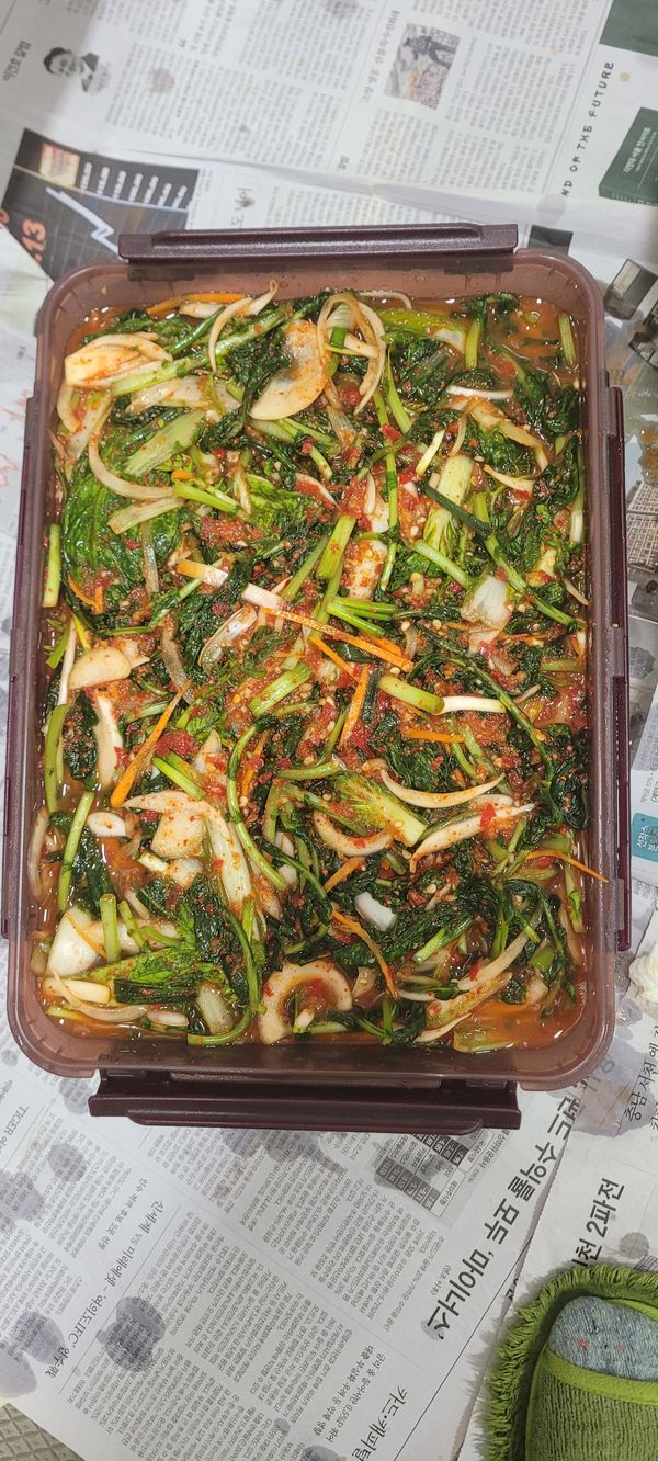 시들은게왔네요 상태는 썩좋치않치만 여린열무가 메인이라서 그런대로 섞어씁니다 받자마자 바로 담갔어요