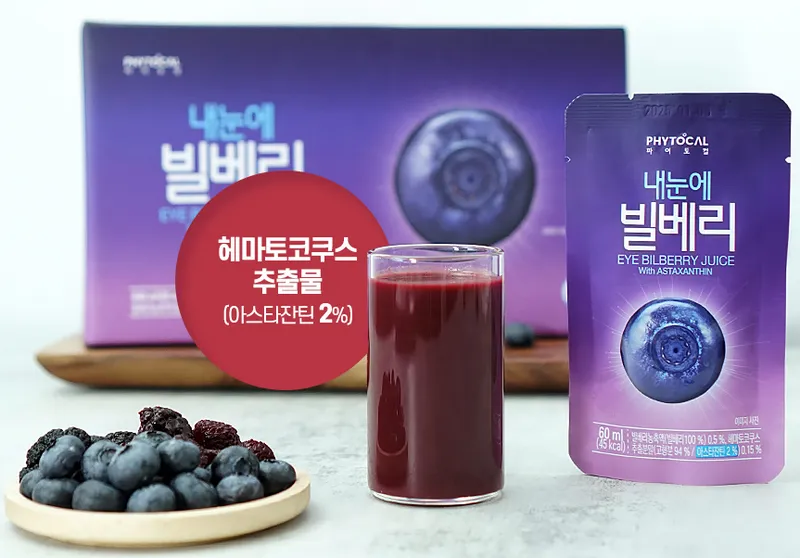 헤마토코쿠스로부터 추출한 수용성 아스타잔틴을 2% 함유하고 있습니다. 수용성 아스타잔틴으로 액상 과채주스 형태로 바로 섭취하실 수 있습니다.