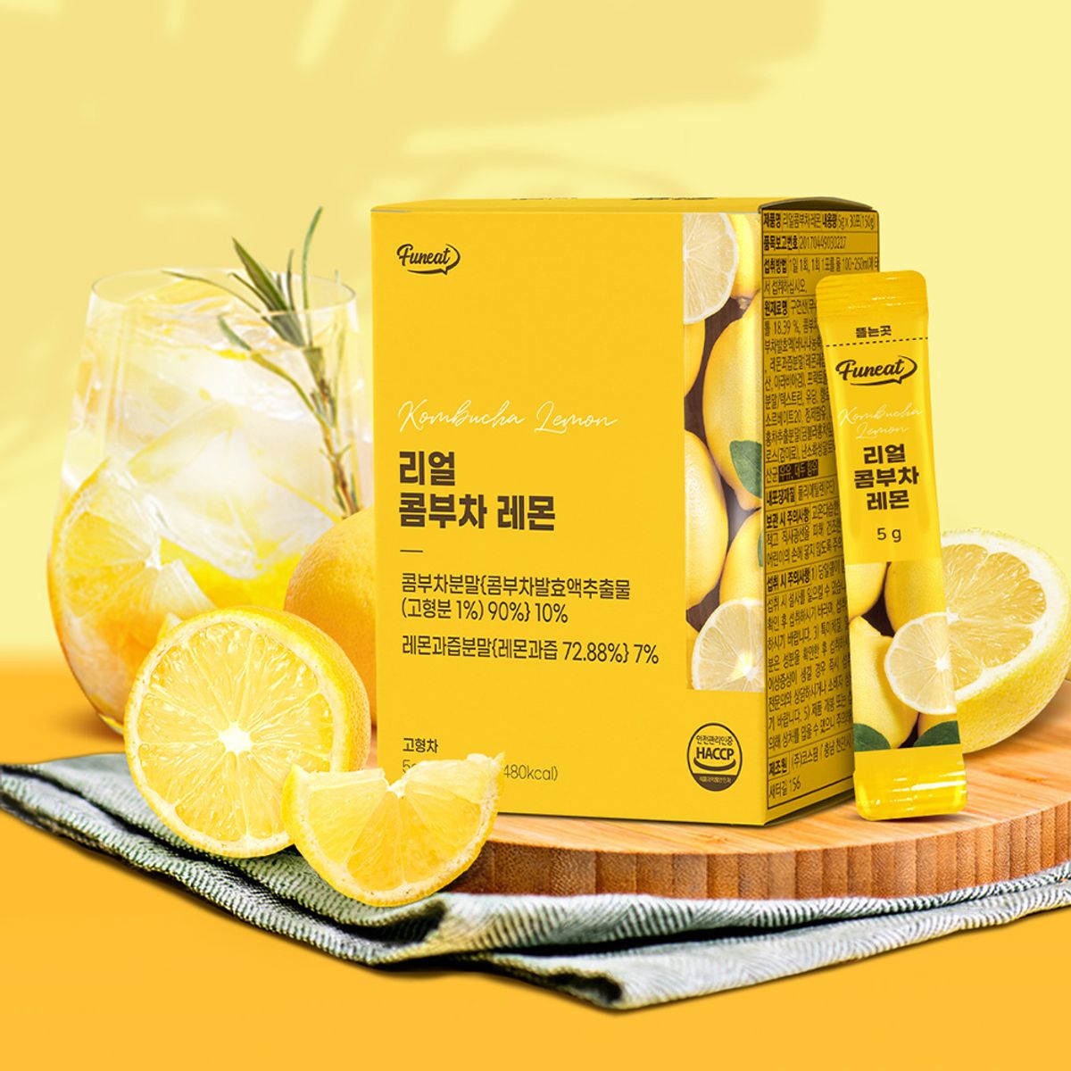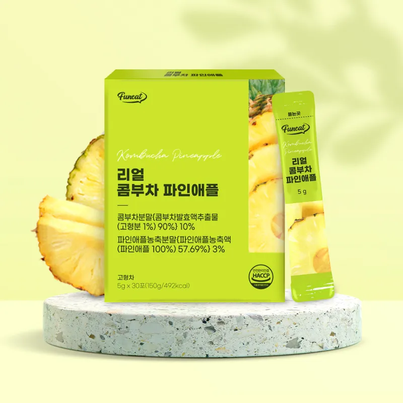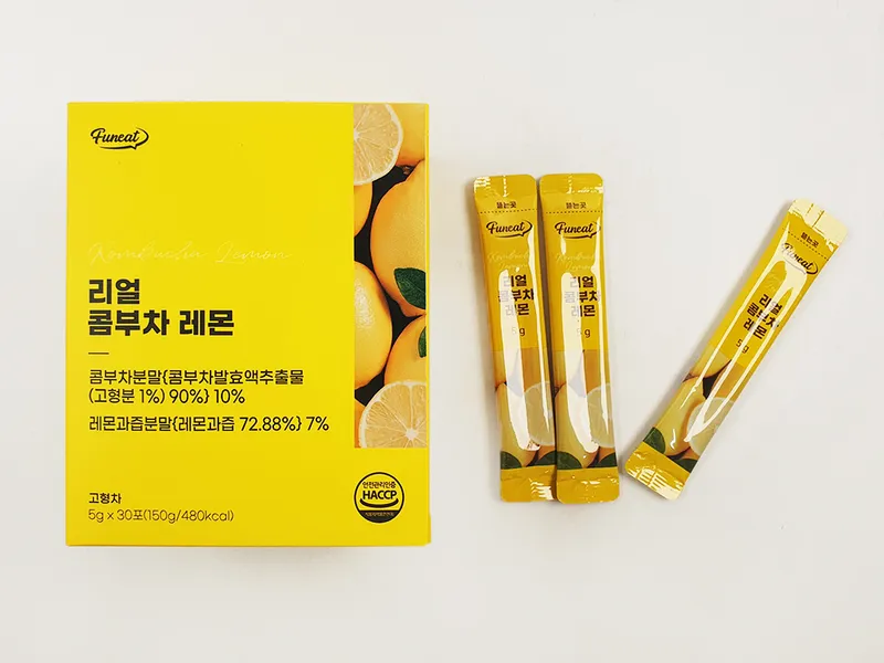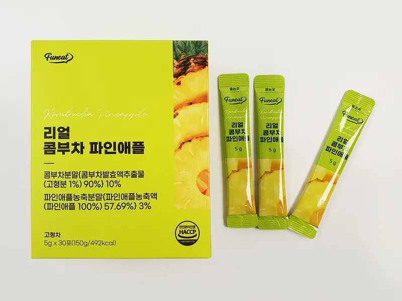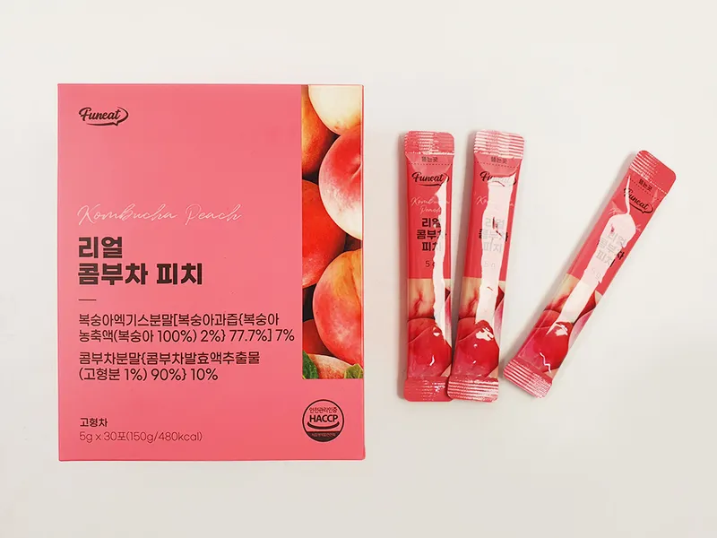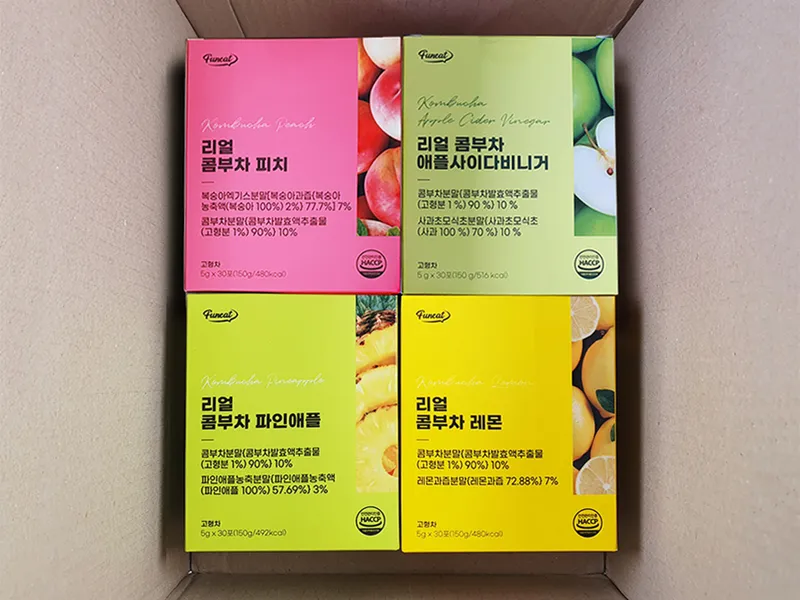 녹차나 홍차에 효모, 스코비, 유익균 등을 첨가해 발효시킨 콤부차입니다. 발효과정에서 다양한 영양소가 생성되며, 자연스럽게 탄산이 만들어지죠.