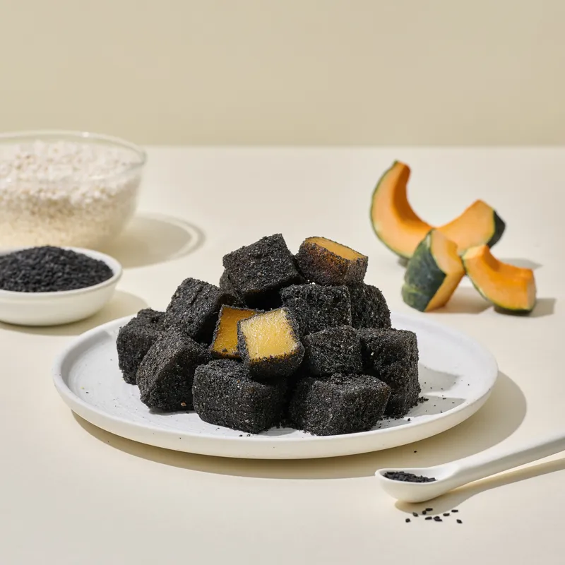 호박의 달콤함과 흑임자의 고소함을 담아