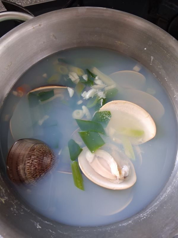 백합은 처음 먹어봤어요 조개가 깨끗해서 해감해도 깨끗했어요 국물이 뽀앟고 싱싱한 맛이 느껴져요 칼칼한국물맛 최고맛 등극