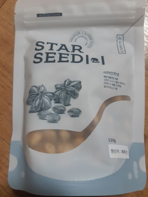 오메가3의 끝판왕이라 불리는 사차인치넛입니다. 고대 잉카제국부터 '땅위의 별'로 불렸으며, 스타씨드라는 귀여운 별칭도 붙었죠. 식감이 뛰어난 것은 물론, 오메가3가 풍부하여 오메가넛이라고도 불리고 있습니다.