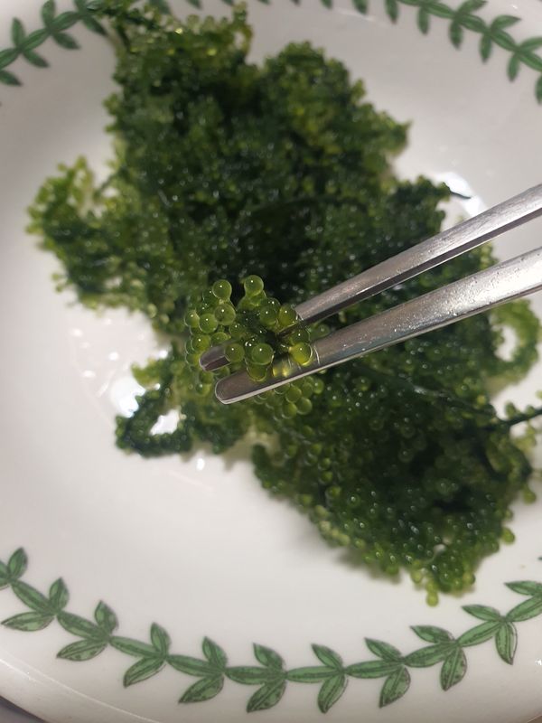 바다포도 한번에 먹을 양 만큼 개별표장이 되어있는데 해조류 라서 녹지 않고 왔다는 점이 가장 좋았어요~!