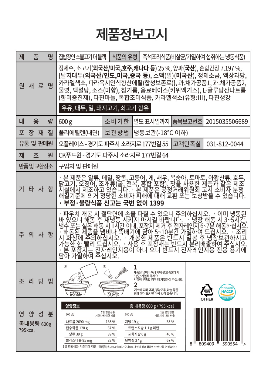 상품정보 제공고시 (원재료 및 원산지 등)