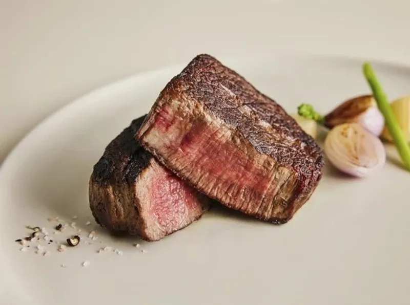 센 불에서 겉면을 먼저 익혀 육즙을 가두고, 이후 중약 불로 속까지 은근하게 익혀 주세요. 소금과 후추만으로도 한우의 깊은 맛이 충분히 살아납니다.