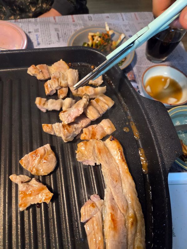 삽겹과 목살 한 덩이씩 구입. 새로 산 코렐 주물냄비에다 삶았는데 남자 어른 세명이 다~ 먹었네요. 고기 아주 맛있습니다