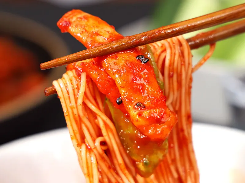 초무침의 새콤함과 어우러져 궁합이 딱 맞아요.