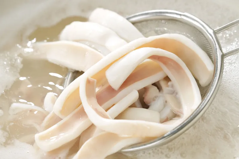 탱글한 오징어와 아삭한 채소의 새콤한 만남