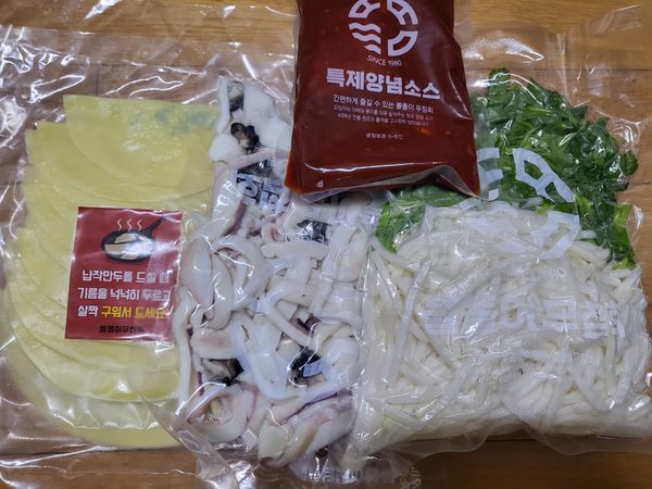 오징어는 질기고 양념은 별로였어요. 다시는 안시킬맛. 원래 푸른*식당 시켜먹던 곳이랑 맛의 차이가 많이 나요 납작만두도 쫄깃함이 없고 그냥 밀가루 같은 맛. 너무실망.