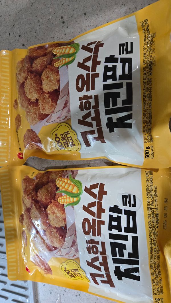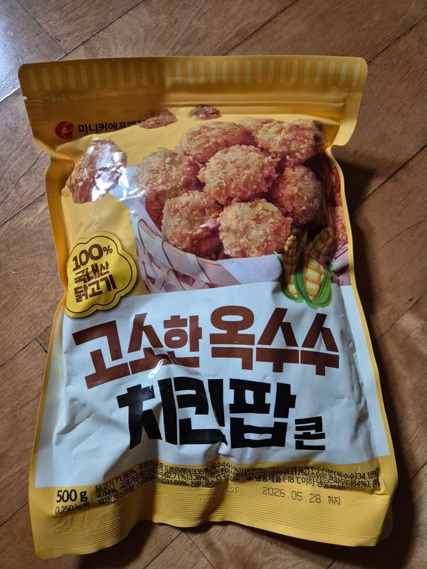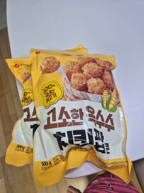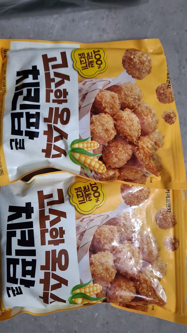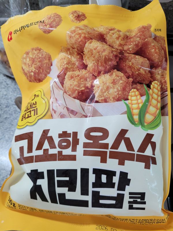 누구나 좋아하는 치킨팝콘에 옥수수와 조합은 어린이들의 최애간식이네요.