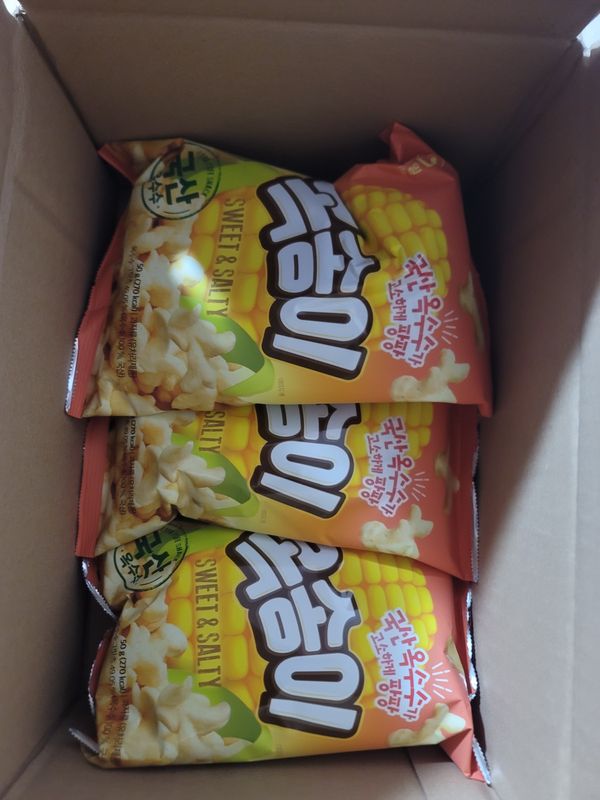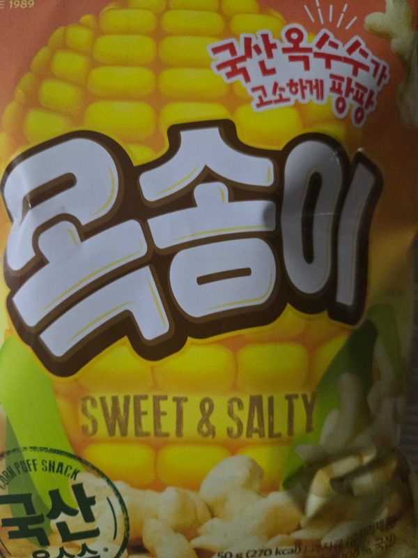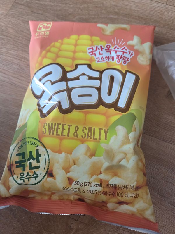 옥수수과자 맛있어요 살짝 쌉쌀한끝맛이있네요 너무맛있어서 괞찮아요 ~^^ 한봉띁으면 그자리에서 순삭~