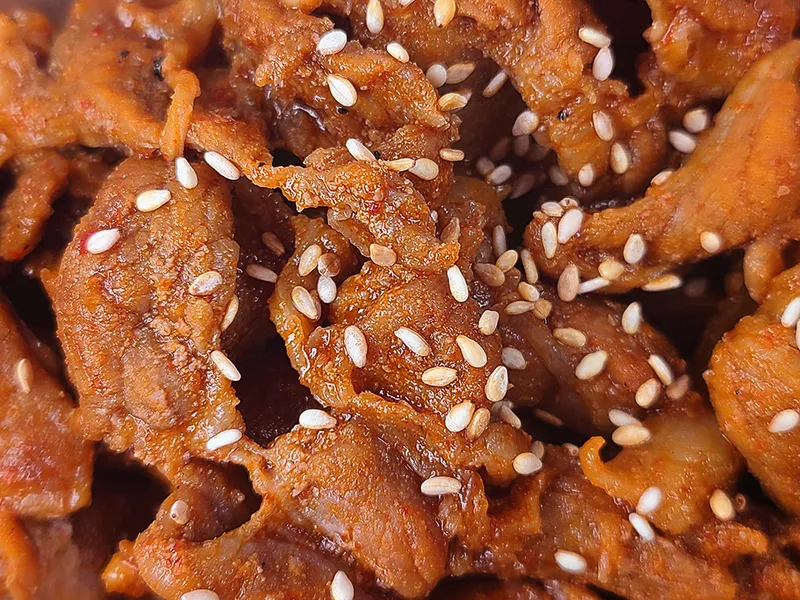 달콤 짭짤한 양념이 촉촉하게 스며들었어요. 질기지 않고 부드럽게 씹히는 육질이 끝내줘요.