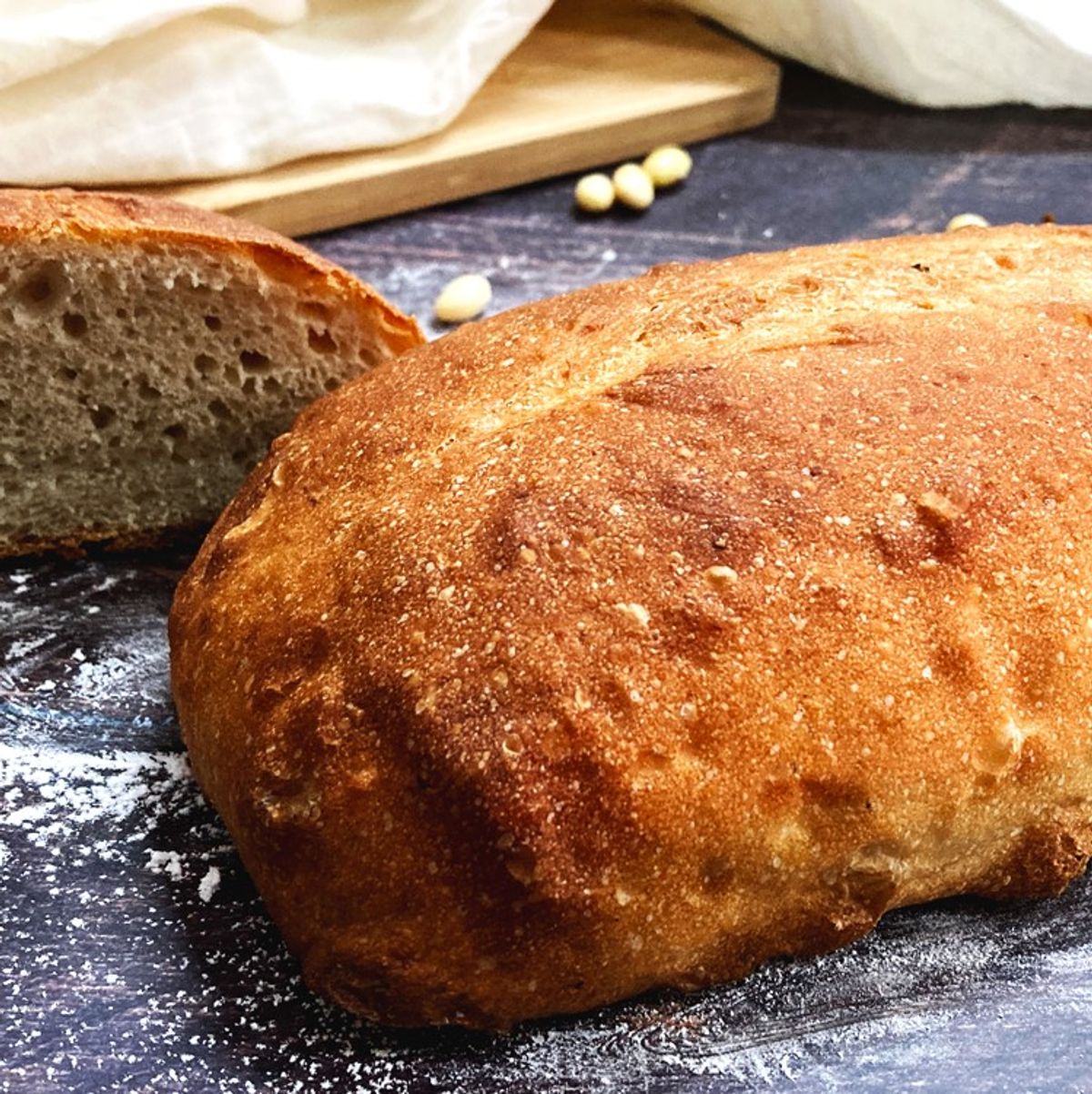 100% 국산 통밀에 국산 콩으로 만든 비지와 콩 국물을 넣어 만든 발효 비지 통밀빵입니다. 발효 비지가 듬뿍 들어가 일반 통밀빵보다 더욱 부드러우면서도 찰진 식감을 자랑합니다.