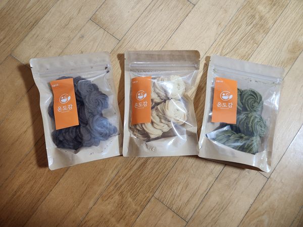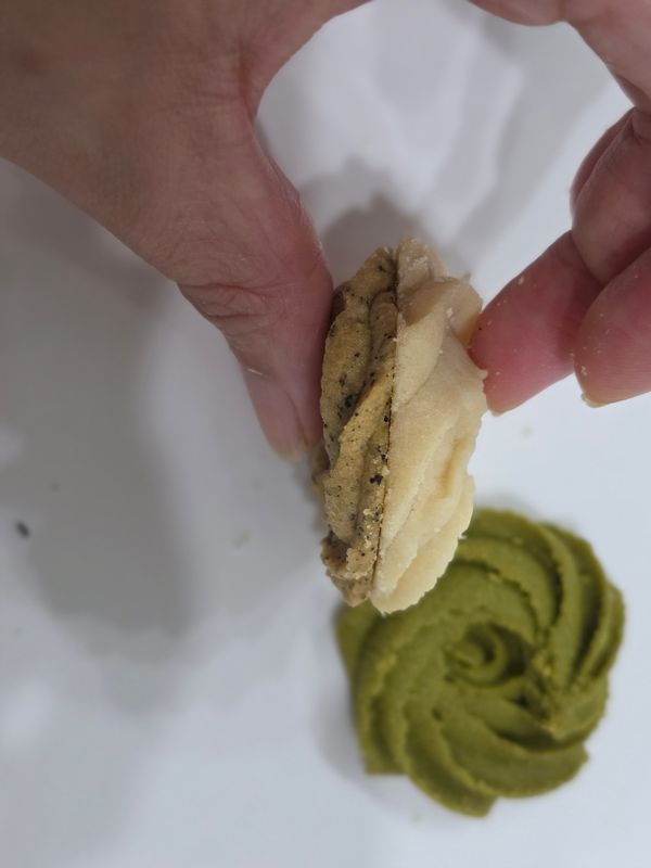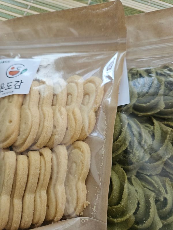 오호! 버터쿠키를 사랑하는 개인적으로는 버터링과 제니쿠키 좋아해요 부드러움은 그 둘의 중간정도 미친듯이 과하게 달지 않고 중간에 짭짤한 맛도 느껴져요. 개인적으로는 녹차가 제일~ 쌉싸름한 녹차쿠키 찾기 너무 힘든데! 여긴 제가 원하는 녹차의 쌉싸름한 맛이 적당히 느껴져요~ 얼그레이는 상대적으로 쌉싸름한 맛이 덜해요 그리고 의도하신 건지는 모르겠으나 두께는 오리지널>녹차>얼그레이 순이었어요 수량은 얼그레이(15)>녹차(13)>오리지널(10) 아무래도 무게로 채워진 거라 그만큼 두께 차이로 풍미 차이가 있는 거 같아요 그래도 전체적으로 티나 우유나 커피 고루 어울릴 거 같아요~ 잘 먹겠습니다.