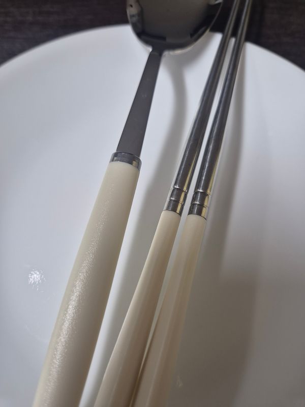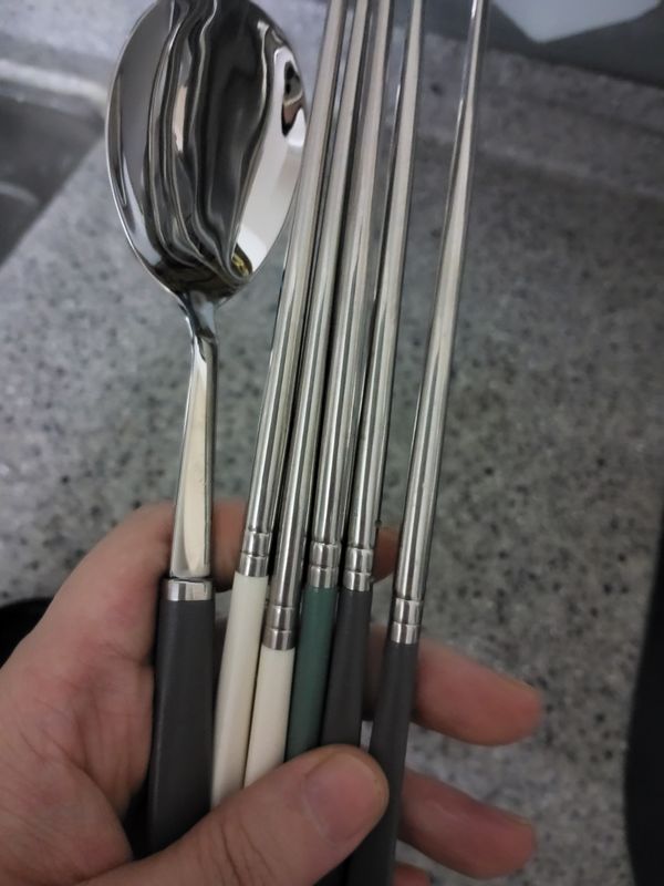 깔끔하고 가벼워요 그립감은 좋은데, 젓가락질이 조금 불편했어요. (손잡이 부분은 두껍고, 음식 집는 부분은 얇아요.)