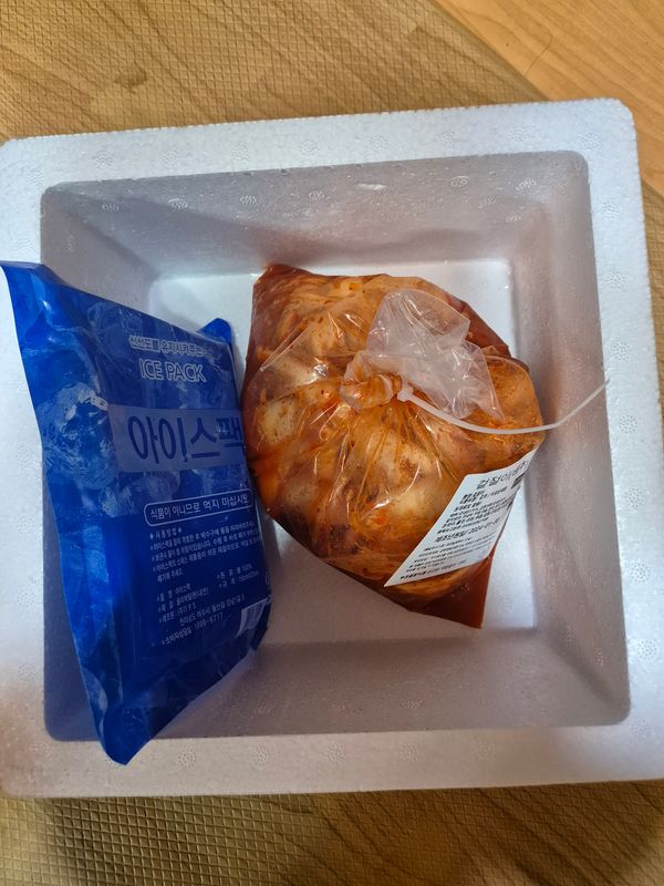 아직 먹기전이지만 아이스팩 다 녹지 않아서 냉기 빵빵하고 생김치냄새가 좋아요.