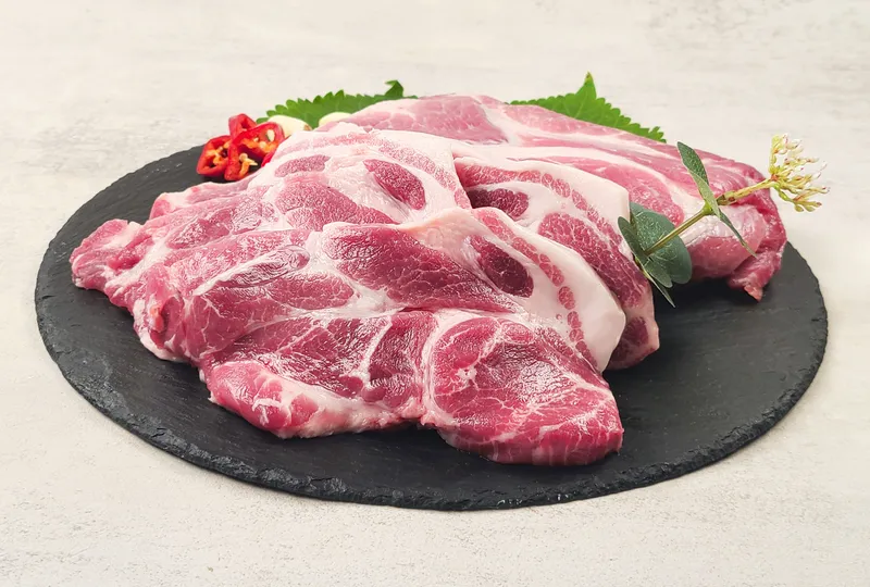 담백하게 즐기기 좋은 목살! 근섬유가 많아 육향이 짙고 풍미가 좋아요.
