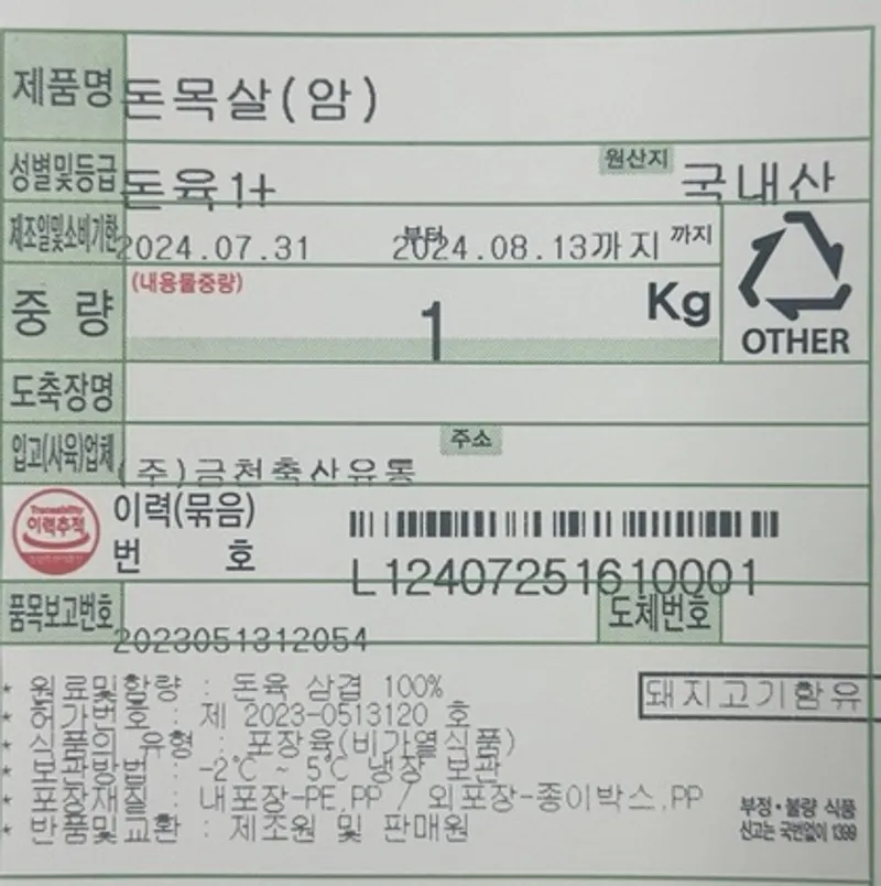축산물 이력번호는 배송 상품에 표기되어있습니다.
