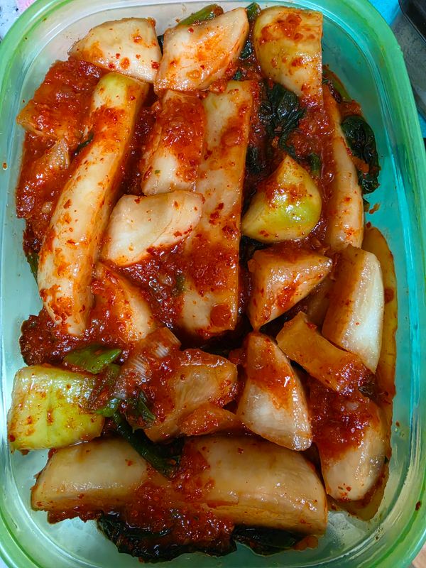 겉절이 느낌이면서도 시간이 지나면 더 맛있게 숙성될 것 같아서 기대됩니다.