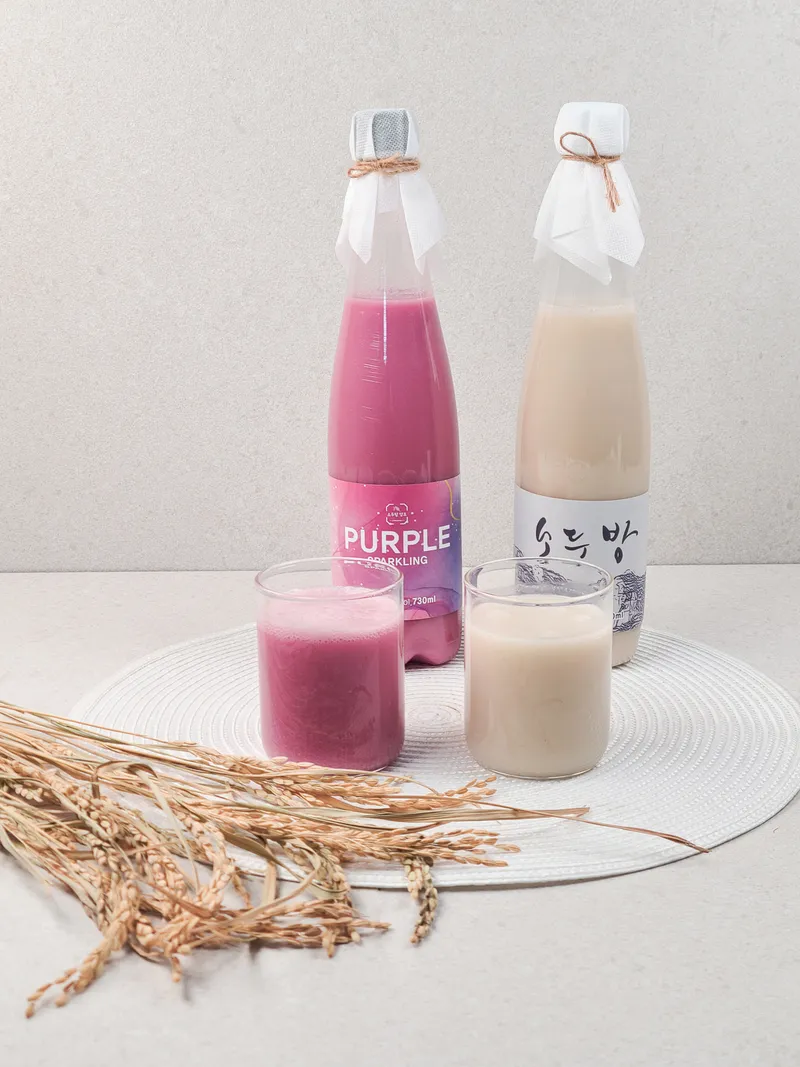 상쾌한 자극을 느낄 수 있는 천연 탄산 막걸리 2종입니다. 부드러운 목 넘김과 산뜻한 청량감을 느낄 수 있는 막걸리로, 보다 자연스러운 탄산의 매력을 경험하실 수 있습니다. 쌀로 만든 탄산 막걸리와 자색 고구마로 만든 탄산 막걸리 2종을 만나보실 수 있어요.
