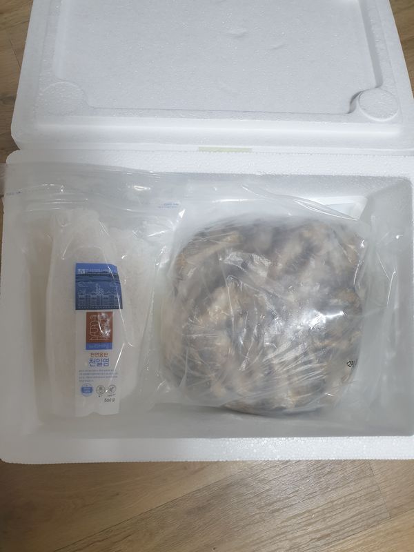 제가 생각한 반건이라기엔 물기가 많은 편이네요. 근데 함께 동봉해주신 천일염은 넘 감사합니다~ 전 엄마가 어릴적 기름두르고 구워주신 옛맛을 생각하면서 오늘 저녁에 구워먹어 볼라구용~~