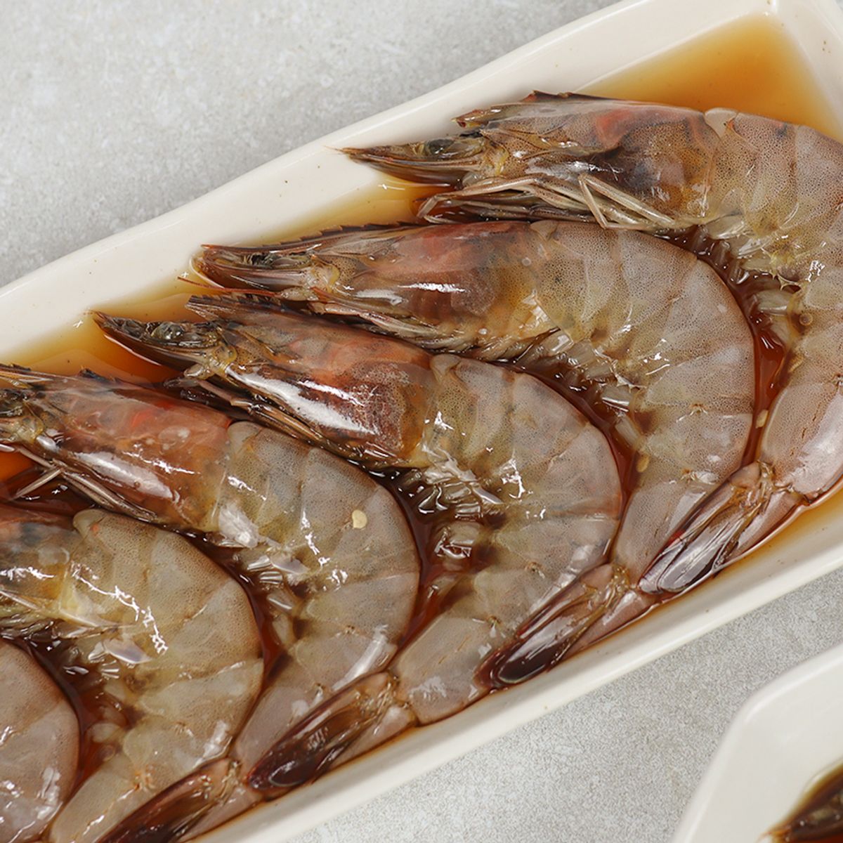 숙성 간장으로 짜지 않게 절여낸 새우장! 새우를 먹기 좋게 까서 간장 소스에 푹~ 찍어드셔보세요. 짜지 않아 자꾸 손이 가는 중독적인 맛이에요. 머리 안에 있는 내장까지도 고소한 별미입니다.