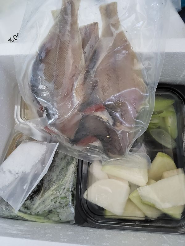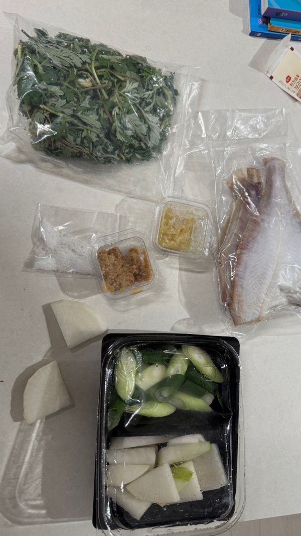 손질 도다리,쑥, 무,대파, 다진마늘,된장, 소금 재료가 다 들어있어 한끼 식사 뚝딱이예요. 담백한 도다리에 향긋한 쑥의 조화가 최고예요. 맛있어요.