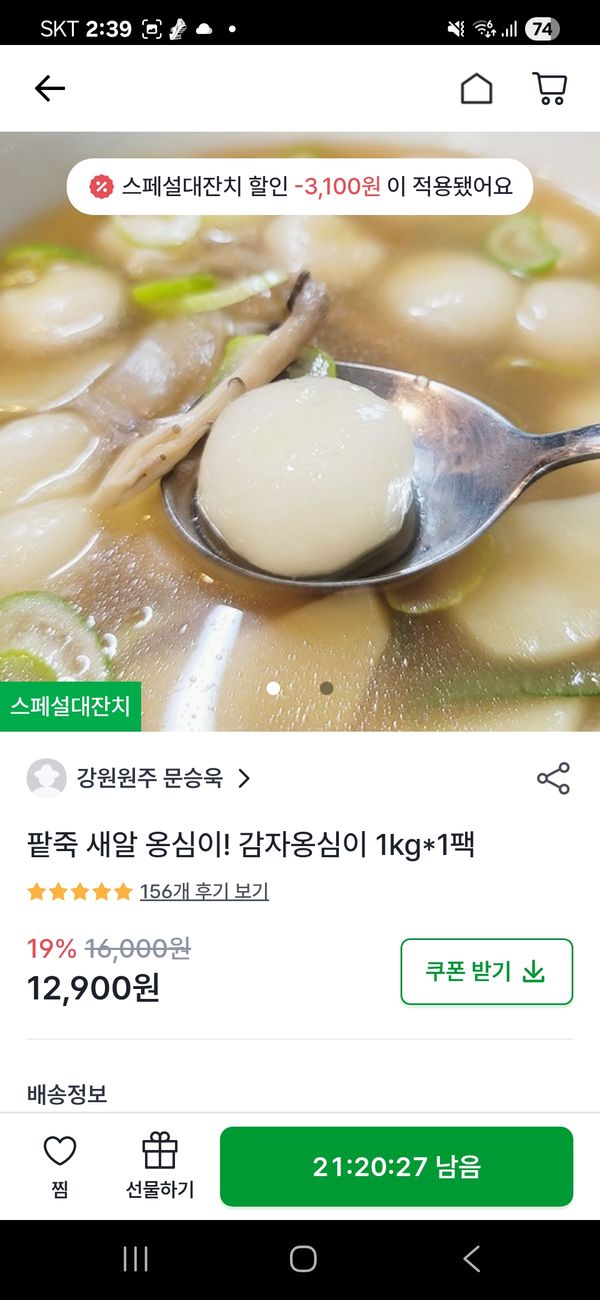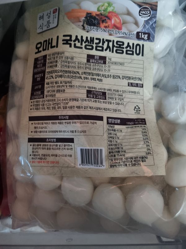 옹심이 좋아해서 주문햇네요 밥 할시간 없을때 대비하여 냉동실에 잇음 든든하죠