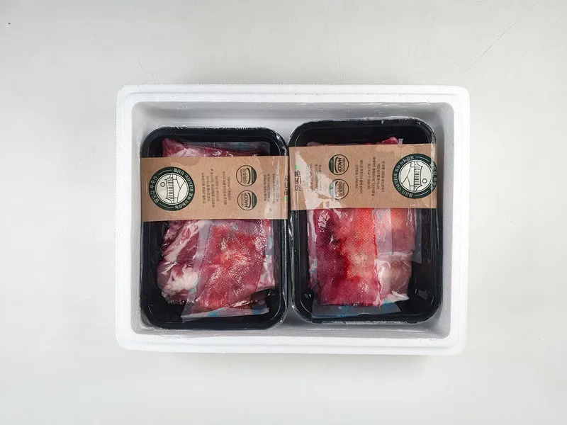 2. 비닐포장 등에 의해 산소가 공급되지 않아 간혹 검붉게 변하는 현상이 발생할 수 있습니다. 산소와 접촉하면 선홍색으로 돌아오며, 품질에 이상 없음을 안내드립니다.