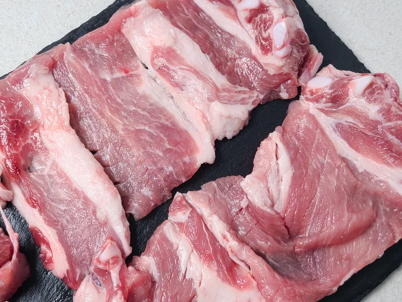 한 입 베어 물면 입안 가득 퍼지는 고소한 맛과 풍부한 육즙이 어우러져 더욱 맛있어요. 돼지갈비 본연의 깊은 맛을 느낄 수 있답니다. 칼집이 나있어 간하기도 쉬운 돼지갈비에요.