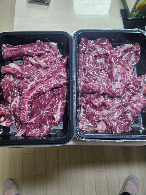 한팩은 고기가 마블링도 좋고 연하고 맛있었어요 그런데 한팩은 맛있기는 했는데 좀 느끼했었요 아마도 마블링이 넘 많아서 그런것 같아요 그래도 간만에 맛있는 고기를 먹어서 만족합니다